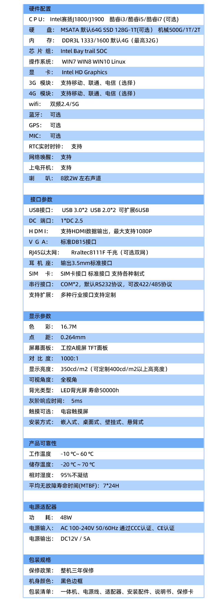 內(nèi)嵌式X86工業(yè)一體機(jī)7寸/10.1寸/15.6寸/21.5寸工控一體機(jī)